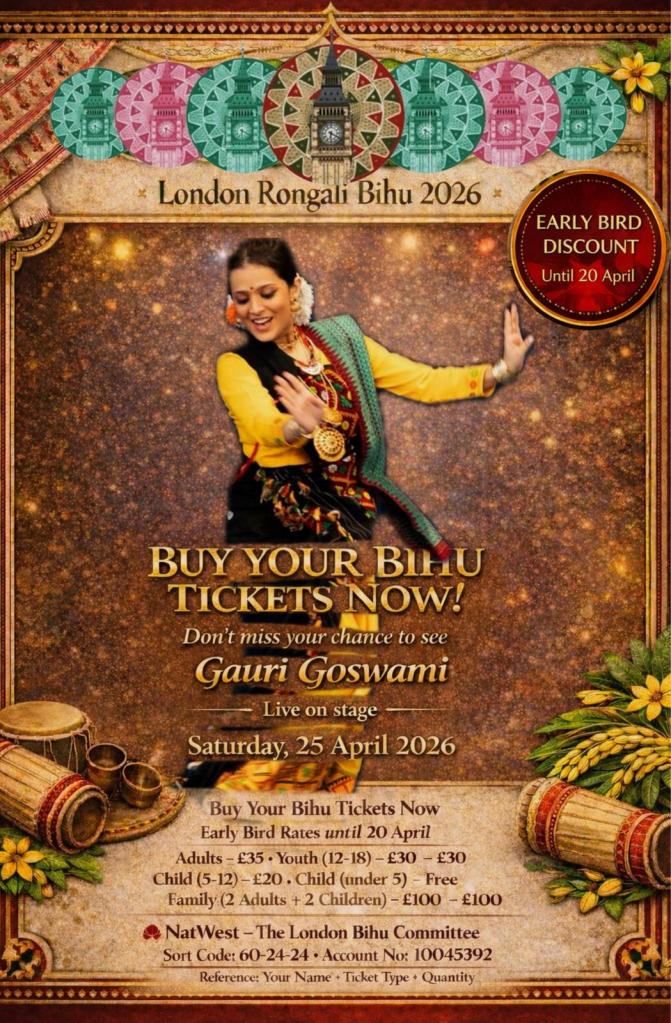 The London Bihu Committee is excited to welcome Gauri Goswami to London Rongali Bihu 2026.